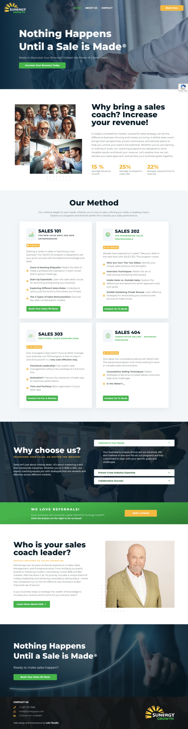Sunergy Growth is a sales coaching and growth consulting company that helps entrepreneurs and businesses improve their sales systems, performance, and revenue strategies. They required a website that communicated their expertise while offering an easy and seamless experience for clients. The project included Calendly integration and other custom tools to simplify scheduling, onboarding, and client interaction. The objective was to educate potential clients, build authority, and generate qualified leads through a clear and conversion-focused platform.